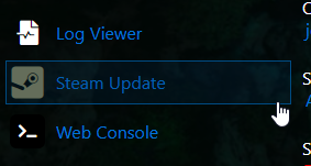 Once the server is stopped, locate and click the Steam Update button in the panel.