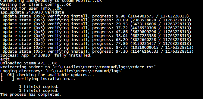 Once the Steam Update is complete, click Start to boot up your server.